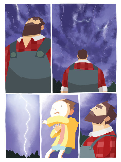 Outro raio cai, e no mesmo instante, o homem estica seus braços e agarra-o com todas as suas forças, estourando uma grande rajada de luz. Começa então uma grande luta, entre o homem e o raio.